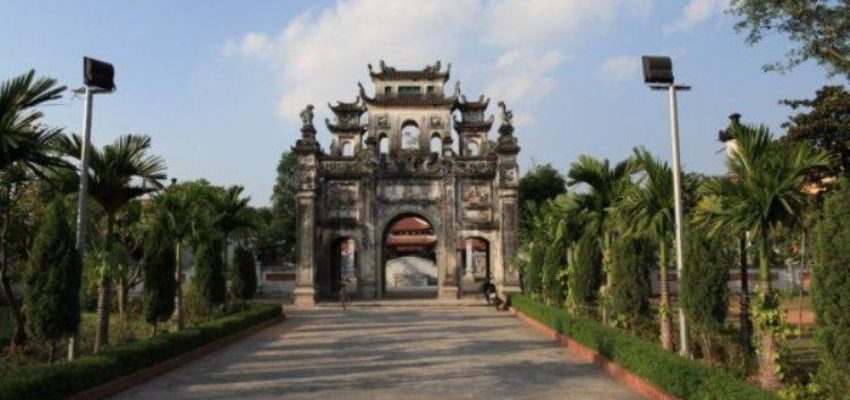 Tiếp sau bình phong là một sân rộng, nơi thường gắn với nhiều sinh hoạt của lễ hội, đặc biệt là việc diễn lại tích vị Thần đấu với Giảo Long. Cuối sân, một Nghi môn nội, đơn giản, ngăn cách giữa không gian sinh hoạt cộng đồng với chốn linh thiêng. Đầu hai trụ chính cũng đặt Lân ngồi, nối giữa cột cái và cột nạnh là một bức tường có mái, thân tường đắp Voi cõng bành như nhằm tôn vinh chiến công của đức Thành hoàng làng. Sau Nghi môn nội là một sân nhỏ vừa đủ để dựng Tả, Hữu vu ở hai bên (mỗi tòa 5 gian) và đặt ở chính giữa giữa là toàn Phương đình 2 tầng 8 mái- sản phẩm khoảng đầu thế kỷ XX. Tòa này cỏ có 4 cột vuông, không theo cách thức phổ biến của kiến trúc cổ truyền, không có bờ nóc, mà từ chính tâm trên đỉnh có 4 “bờ guột” chạy thẳng ra 4 góc. Từ thân cột các hệ “đấu củng” theo lối chồng rường dưới dạng cánh gà đầy sáng tạo, đã phối hợp cùng xà vươn ra đỡ mái. Hiện tượng ít cột đã dẫn đến sự thông thoáng cho kiến trúc, đồng thời, cũng tạo cho các bộ phận kết cấu khác có điều kiện hơn trong việc chạm khắc mà cụ thể ở đây là các đề tài thuộc hệ tứ linh và các hoa quả thiêng mang tính biểu tượng như: na, lựu, phật thủ…loại có nhiều hạt, nhiều tay gắn với ước vọng cầu sinh sôi phát triển, dồi dào mang tính chất cầu trường thọ và trừ tà ma…