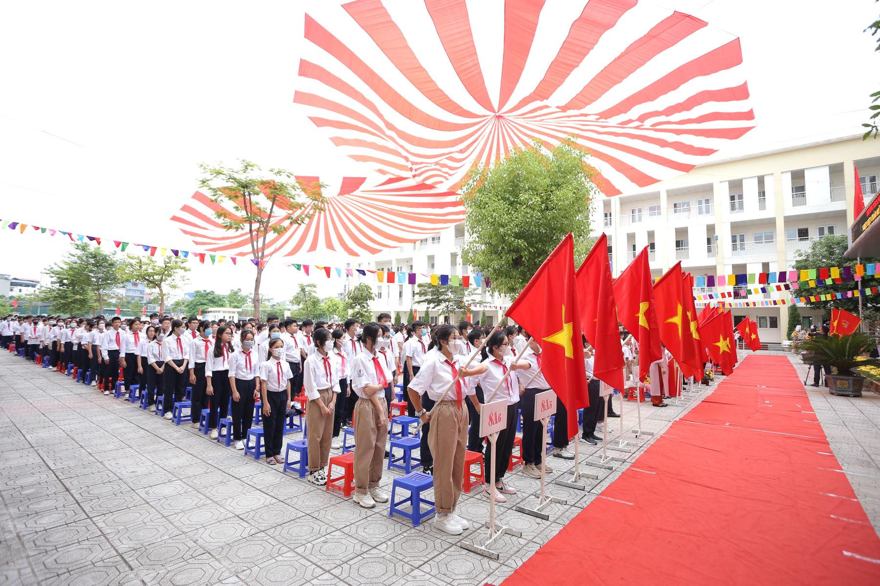 Trong không khí trang trọng của buổi lễ, nhà giáo Lê Thị Thu Hoa – Bí thư chi bộ, Hiệu trưởng nhà trường đã đánh trống khai trường và tuyên bố khai giảng năm học 2022 – 2023. Năm học 2022 – 2023 toàn trường sẽ triển khai thực hiện nhiệm vụ năm học theo chỉ đạo chung của toàn ngành và sở GD&ĐT Hà Nội; Nhà trường cần thực hiện tốt mục tiêu “Kép” vừa dạy học, vừa chống dịch Covid - 19. Cả giáo viên và học sinh luôn trong tâm thế chủ động, linh hoạt học trực tuyến khi dịch dùng phát; Nhà trường thực hiện chương trình tăng cường, rèn luyện kỹ năng sống, phát triển năng khiếu sở trường của học sinh; Đối với các thầy cô giáo, mỗi thầy cô sẽ là một tấm gương về đạo đức, tác phong, kỹ năng ứng xử, tập thể cán bộ giáo viên không ngừng phấn đấu học tập nâng cao trình độ, kỹ năng ứng dụng công nghệ thông tin trong dạy học, nâng cao trình độ ngoại ngữ, đáp ứng các tiêu chuẩn của trường học chất lượng cao…; Đối với các em học sinh, mỗi em cần thực hiện nghiêm túc nội quy, rèn luyện kỹ năng tự chủ, kỹ năng ứng xử với cha mẹ, thầy cô và bạn bè, có thái độ văn minh trong sinh hoạt, học tập, có tinh thần đoàn kết, biết chia sẻ, lắng nghe… Đặc biệt Nhà trường tích cực định hướng cho các em học sinh để việc học tập trở thành nhu cầu của bản thân, học vì bản thân muốn khám phá tri thức…; Năm học 2022 – 2023, Nhà trường cũng sẽ tăng cường hoạt động các câu lạc bộ để bồi dưỡng học sinh giỏi các cấp.