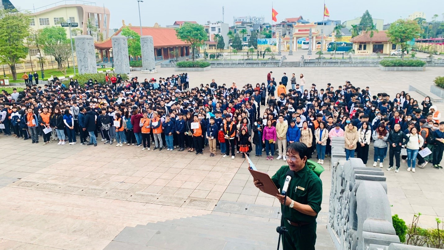 Sau khi làm lễ dâng hương, đoàn được nghe hướng dẫn viên thuyết minh về Khu di tích đại đội 915. Thầy, cô giáo và các em học sinh đều vô cùng xúc động, biết ơn và tự hào trước tấm gương hy sinh anh dũng của 60 thanh niên xung phong khi làm nhiệm vụ vận chuyển hàng quân sự từ ga Lưu Xá để chi viện cho chiến trường miền Nam trong cuộc kháng chiến chống đế quốc Mĩ. Họ đã ngã xuống để bảo vệ Tổ quốc khi tuổi đời vừa mới mười chín, đôi mươi; khi bao nhiêu ước mơ, khát vọng còn đang dang dở. Niềm xúc động càng nhân lên gấp bội khi thầy cô và các em học sinh được tận mắt nhìn thấy gần 350 hiện vật, tài liệu, tư liệu tại Nhà trưng bày trong Khu di tích. Cũng nhờ đó mà các em học sinh đã hiểu thêm về cuộc sống khó khăn, chiến đấu gian khổ của các Thanh niên xung phong.