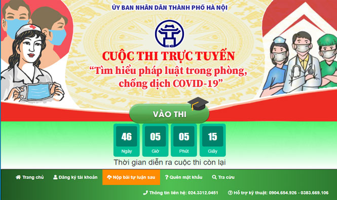 - Thời gian tham gia dự thi trên hệ thống website của Cuộc thi tại địa chỉ https://timhieuphapluatpccovid-19.hanoi.gov.vn/ bắt đầu từ ngày 20/6/2021.