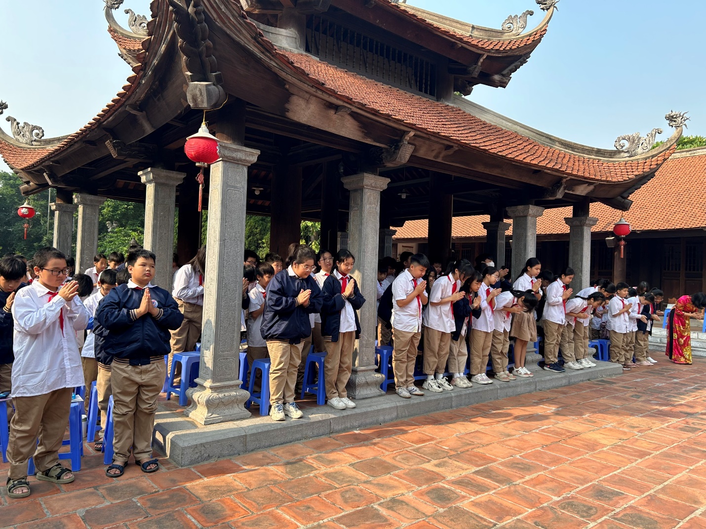 Tại đây, các em học sinh đã được làm lễ tỏ lòng thành kính biết ơn các bậc tiền nhân có công với quê hương, đất nước; đồng thời được tìm hiểu thêm về đình cũng như vị danh tướng Lý Thường Kiệt.