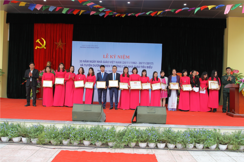 Hòa chung với không khí vui tươi, phấn khởi chào mừng kỉ niệm 35 năm ngày nhà giáo Việt Nam 20/11. Được sự đồng ý của các cấp ủy Đảng, PGD và ĐT quận Long Biên, hôm nay, trường THCS Ngọc Thụy long trọng tổ chức lễ mít tinh kỷ niệm 35 năm ngày Nhà giáo Việt Nam và tuyên dương khen thưởng các nhà giáo tiêu biểu.