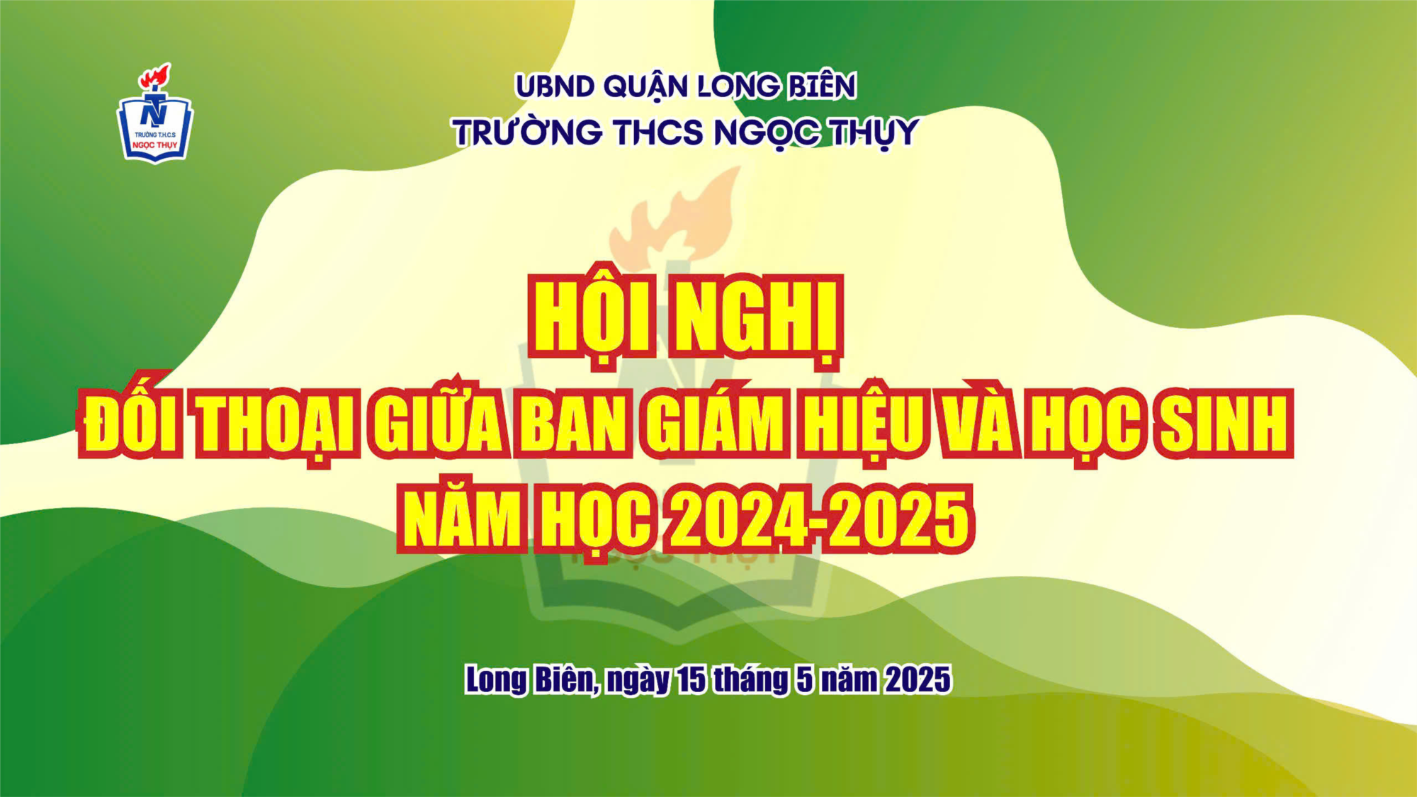 Sáng ngày 15/5/2025, hòa trong không khí sôi nổi chào mừng kỷ niệm 84 năm Ngày thành lập Đội Thiếu niên Tiền phong Hồ Chí Minh (15/5/1941 – 15/5/2025), thực hiện theo Chương trình công tác Đội và phong trào thiếu nhi năm học 2024–2025, Liên đội trường THCS Ngọc Thụy đã tổ chức Hội nghị đối thoại giữa Ban Giám hiệu và học sinh.