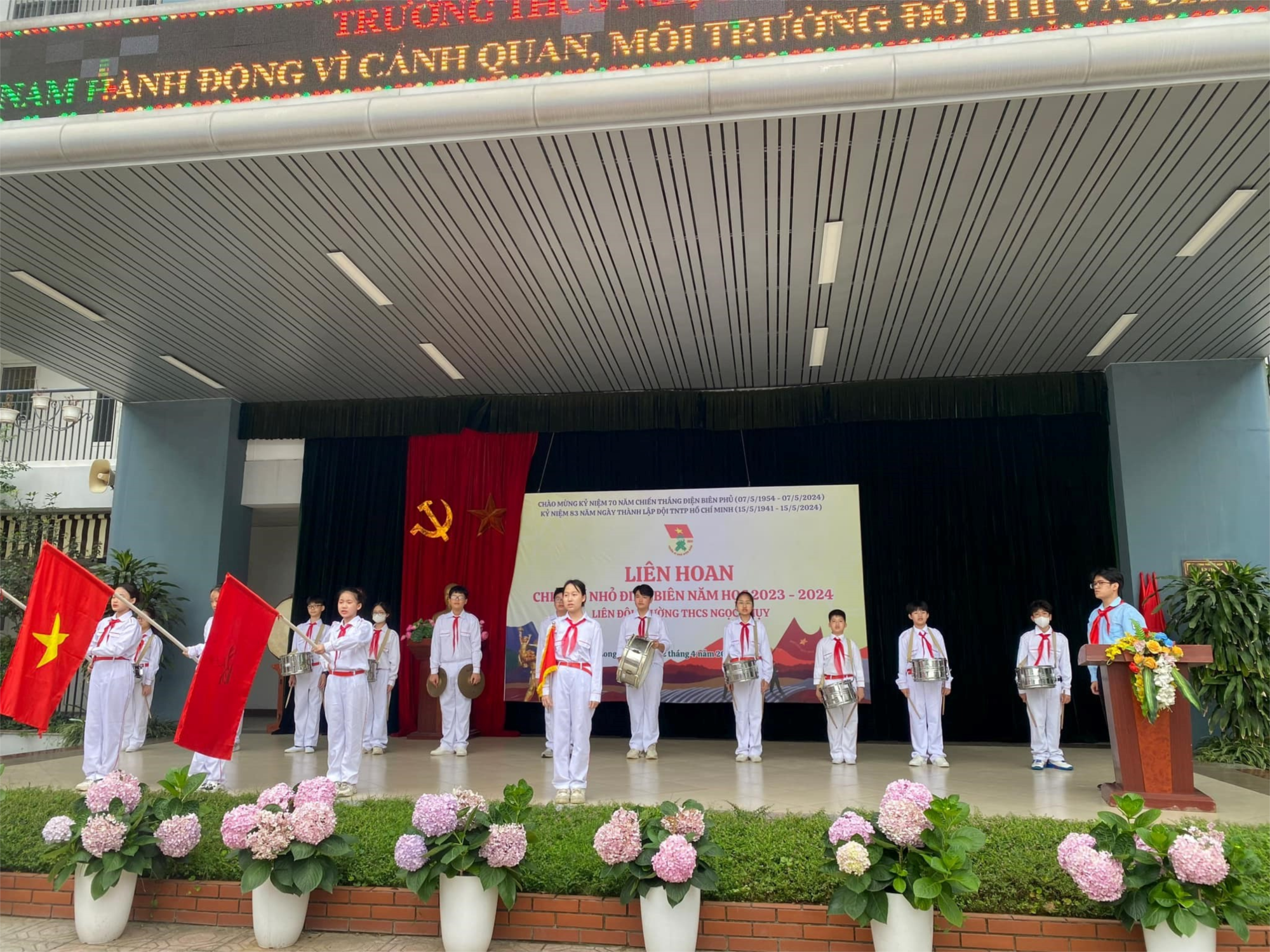 Ngoài ra, còn có sự hiện diện của các thầy cô giáo trong Hội đồng sư phạm nhà trường. Đặc biệt, là sự có mặt của hơn 1300 bạn đội viên Liên đội trường THCS Ngọc Thụy.