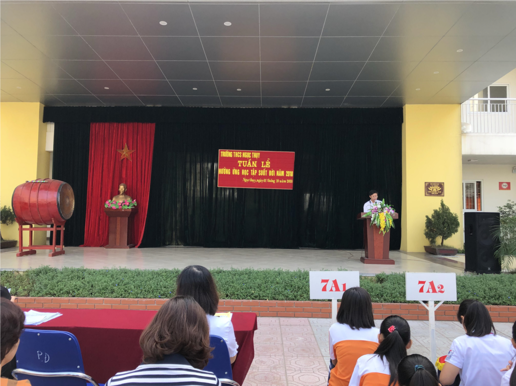 Thực hiện công văn số 01/KH-BCĐ ngày 19/9/2018 của UBND Quận Long Biên, “Kế hoạch tuần lễ hưởng ứng học tập suốt đời”, sáng ngày 1/10/2018, trường THCS Ngọc Thụy tổ chức lễ phát động “Tuần lễ hưởng ứng học tập suốt đời” năm 2018 với chủ đề: “Học ở trường, học ở sách vở, học lẫn nhau và học ở nhân dân”.