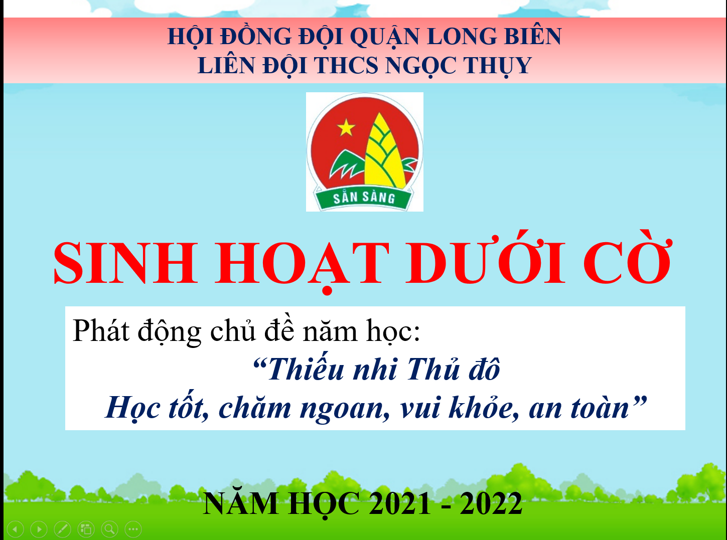 Thực hiện chương trình công tác Đội và phong trào thanh thiếu nhi năm học 2021 - 2022, sáng nay ngày 06/9/2021 - ngày thứ hai đầu tiên của năm học 2021 – 2022, được sự nhất trí của BGH nhà trường, Liên đội THCS Ngọc Thụy phát động Chủ đề công tác Đội và phong trào thanh thiếu nhi năm học 2021 - 2022 với chủ đề: