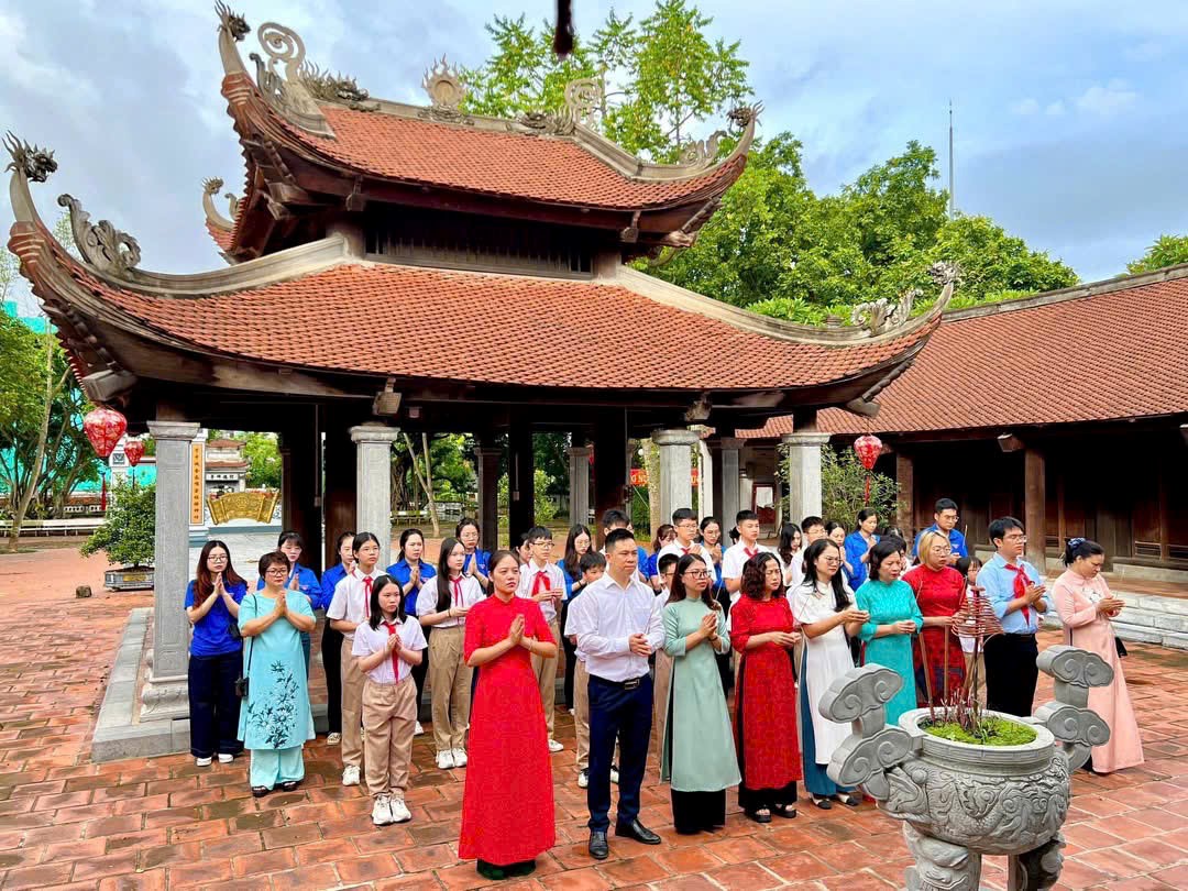 Điểm dừng chân đầu tiên là đình Phúc Xá – di tích lịch sử tâm linh ngay trên địa bàn phường Bồ Đề, nơi thờ phụng Thái uý quốc công Lý Thường Kiệt – vị anh hùng dân tộc kiệt xuất, người đã đi vào lịch sử với bài thơ “Nam quốc sơn hà” khẳng định chủ quyền dân tộc. Trong không gian linh thiêng của đình Phúc Xá, thầy và trò Trường THCS Ngọc Thụy thành kính tưởng nhớ và tự hào ôn lại những trang sử vẻ vang của dân tộc Việt Nam – một dân tộc anh hùng, bất khuất qua bao cuộc trường chinh giành độc lập, giữ gìn bờ cõi.