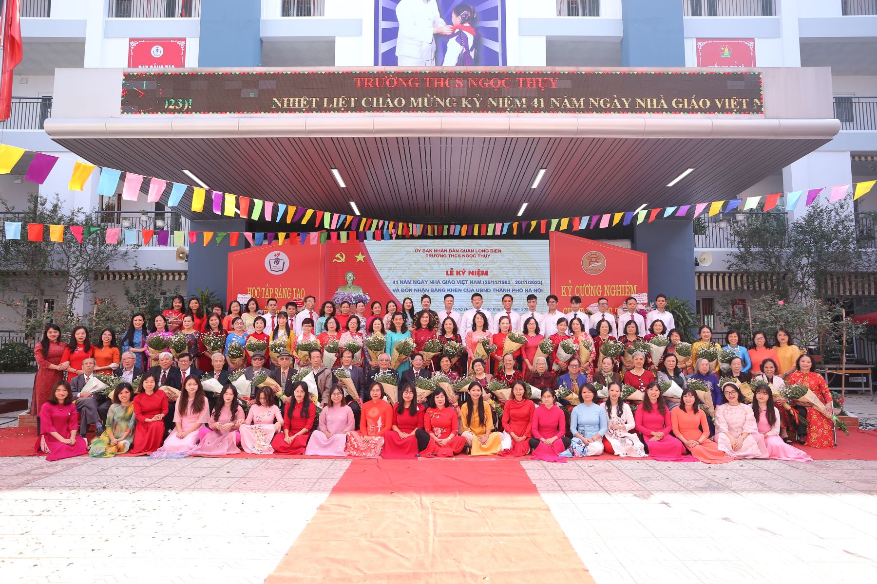 Hoà chung trong không khí tưng bừng kỉ niệm 41 năm Ngày Nhà giáo Việt Nam 20/11, thầy và trò trường THCS Ngọc Thụy vinh dự được đón các vị đại biểu, các thầy cô giáo đã giảng dạy và công tác tại trường qua nhiều thế hệ cùng góp mặt tại Lễ kỉ niệm 41 năm Ngày Nhà giáo Việt Nam 20/11 và đón nhận bằng khen của UBND Thành phố Hà Nội.