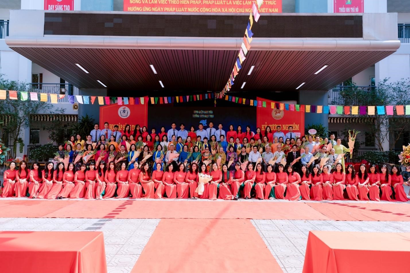 Sáng ngày 17/11/ 2024, trong rừng cờ hoa rực rỡ và không khí ấm áp - hội tụ tình nghĩa thầy trò của nhiều thế hệ, cùng với tình cảm yêu mến, sự quan tâm sâu sắc của các vị đại biểu, khách quý, Trường THCS Ngọc Thụy long trọng tổ chức chương trình gặp mặt nhân dịp kỷ niệm 65 ngày thành lập trường (1959 - 2024), 42 năm ngày nhà giáo Việt Nam (20/11/1982 - 20/11/2024). Chương trình đã diễn ra thành công tốt đẹp, thể hiện niềm tự hào và biết ơn sâu sắc của thầy và trò đối với mái trường THCS Ngọc Thụy thân yêu.