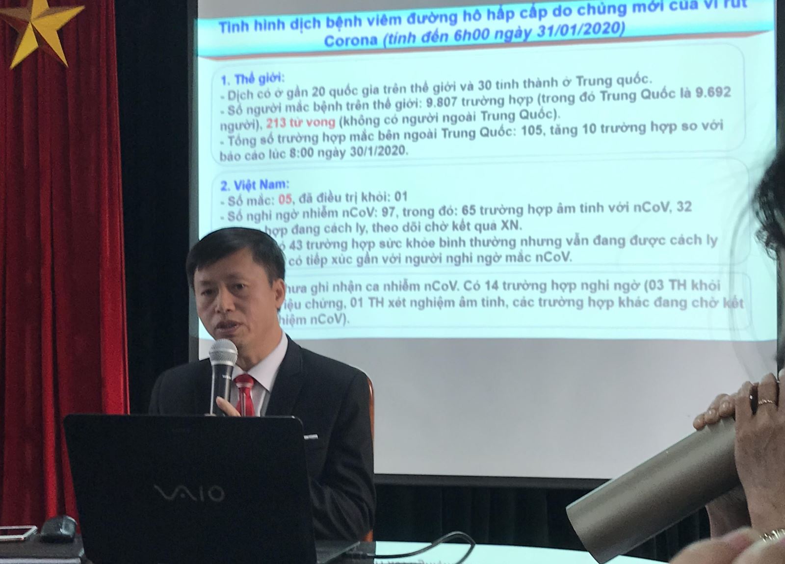 Thầy Nguyễn Phú Cường - Bí thư chi bộ - Hiệu trưởng tuyên truyền về công tác phòng chống dịch bệnh viêm đường hô hấp cấp do chủng mới của vi rút Corona trong Hội đồng sư phạm