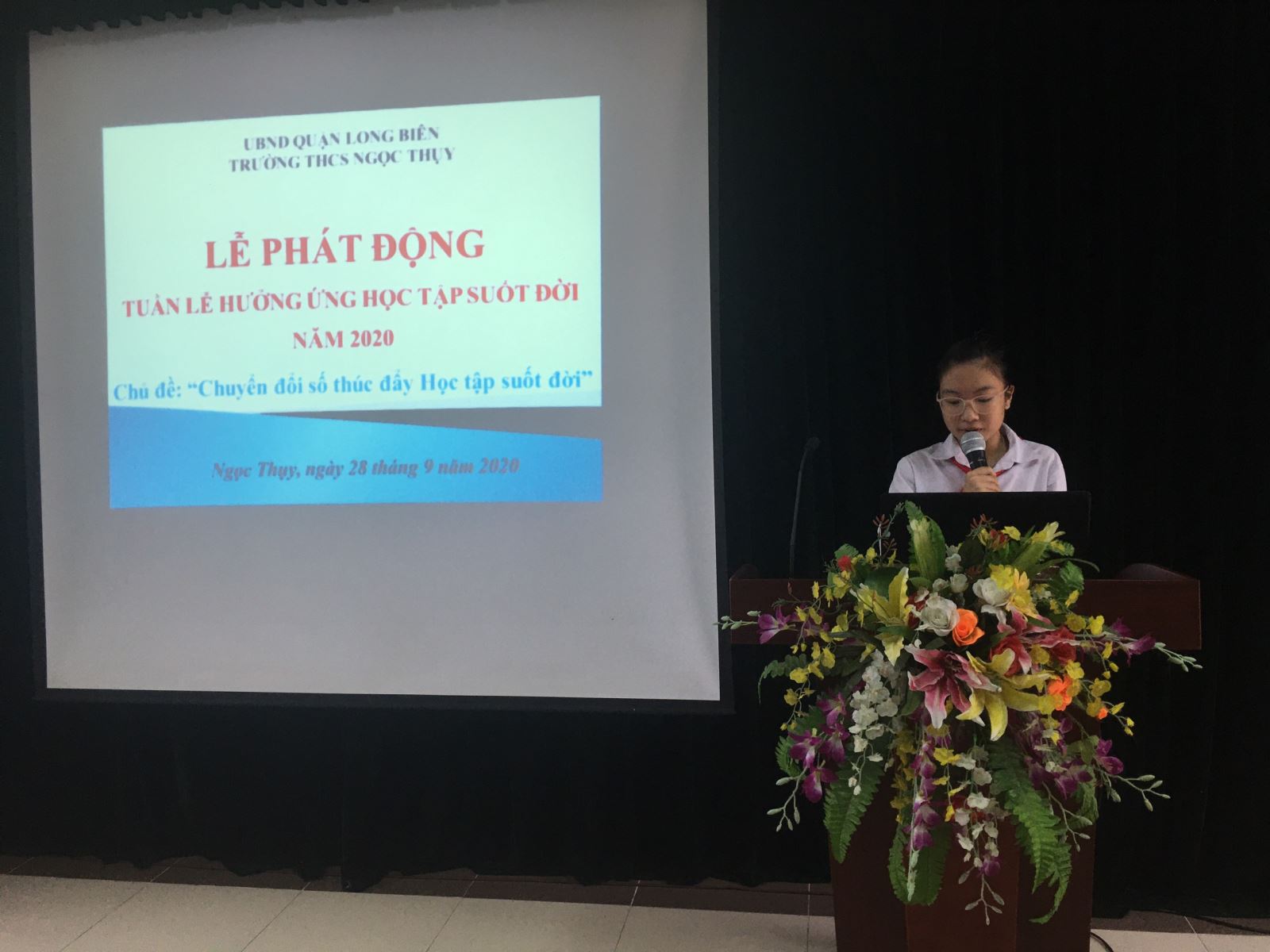 Thay mặt cho 956 học sinh của trường THCS Ngọc Thụy, em Lê Minh Ngọc lớp 9A1 đã có lời hưởng ứng Tuần lễ: "Kiến thức nhân loại vô cùng phong phú, khoa học kĩ thuật không ngừng phát triển, có nhiều vấn đề nảy sinh trong cuộc sống cần được giải quyết và tiếp thu, nếu ta không học tập thì sẽ bị lạc hậu, hơn nữa yêu cầu xã hội ngày càng cao, là học sinh lại càng cần phải học một cách toàn diện, đầy đủ, học lí thuyết gắn với thực hành, vận dụng vào đời sống đế nắm chắc bài học hơn...