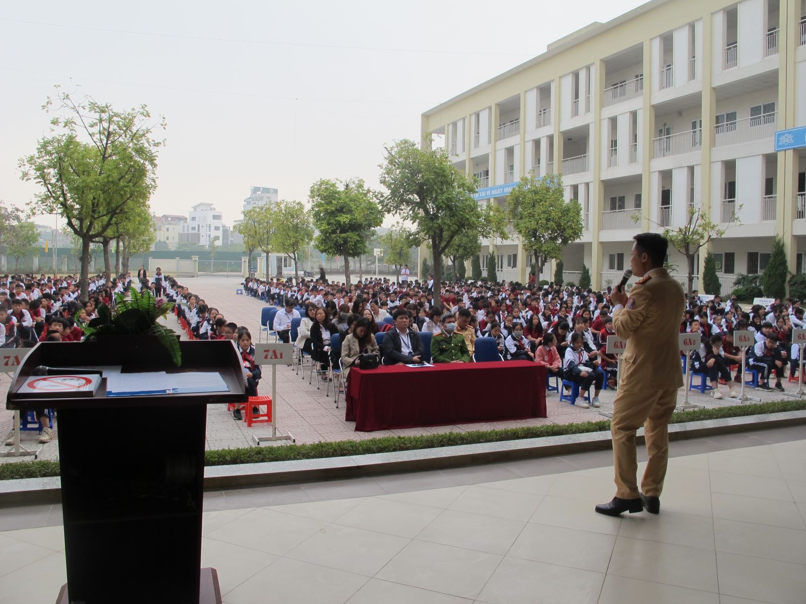 Tại buổi tuyên truyền, các em học sinh được nghe đồng chí Đại úy Nguyễn Hoàng Anh cán bộ Đội cảnh sát giao thông trật tự - Công an quận Long Biên truyền đạt các kiến thức cơ bản về Luật giao thông đường bộ, những nguyên nhân chính dẫn đến tai nạn giao thông và việc chấp hành luật an toàn giao thông (ATGT) ở lứa tuổi học đường; đồng thời được giới thiệu các biển báo hiệu giao thông.