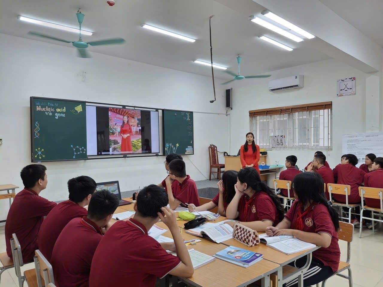 Tiết học không chỉ dừng lại ở việc cung cấp kiến thức lý thuyết về nucleic acid, mà còn là hành trình giúp học sinh hiểu rõ bản chất và vai trò của DNA, RNA trong cơ thể sống. Thông qua hình ảnh minh họa, video mô phỏng và hoạt động nhóm, các em không chỉ nhận biết được cấu trúc xoắn kép của DNA và mối liên kết bổ sung giữa các nucleotide, mà còn biết vận dụng kiến thức để giải thích các hiện tượng di truyền trong thực tế. Tiết học đã phát huy được năng lực tự chủ, hợp tác và tư duy phản biện của học sinh. Các em chủ động tìm hiểu, trao đổi và cùng nhau xây dựng kiến thức mới thông qua phiếu học tập, thảo luận nhóm và báo cáo kết quả. Việc ứng dụng công nghệ thông tin, hình ảnh trực quan và công cụ hỗ trợ AI giúp bài học trở nên sinh động, học sinh dễ hình dung và ghi nhớ lâu hơn.