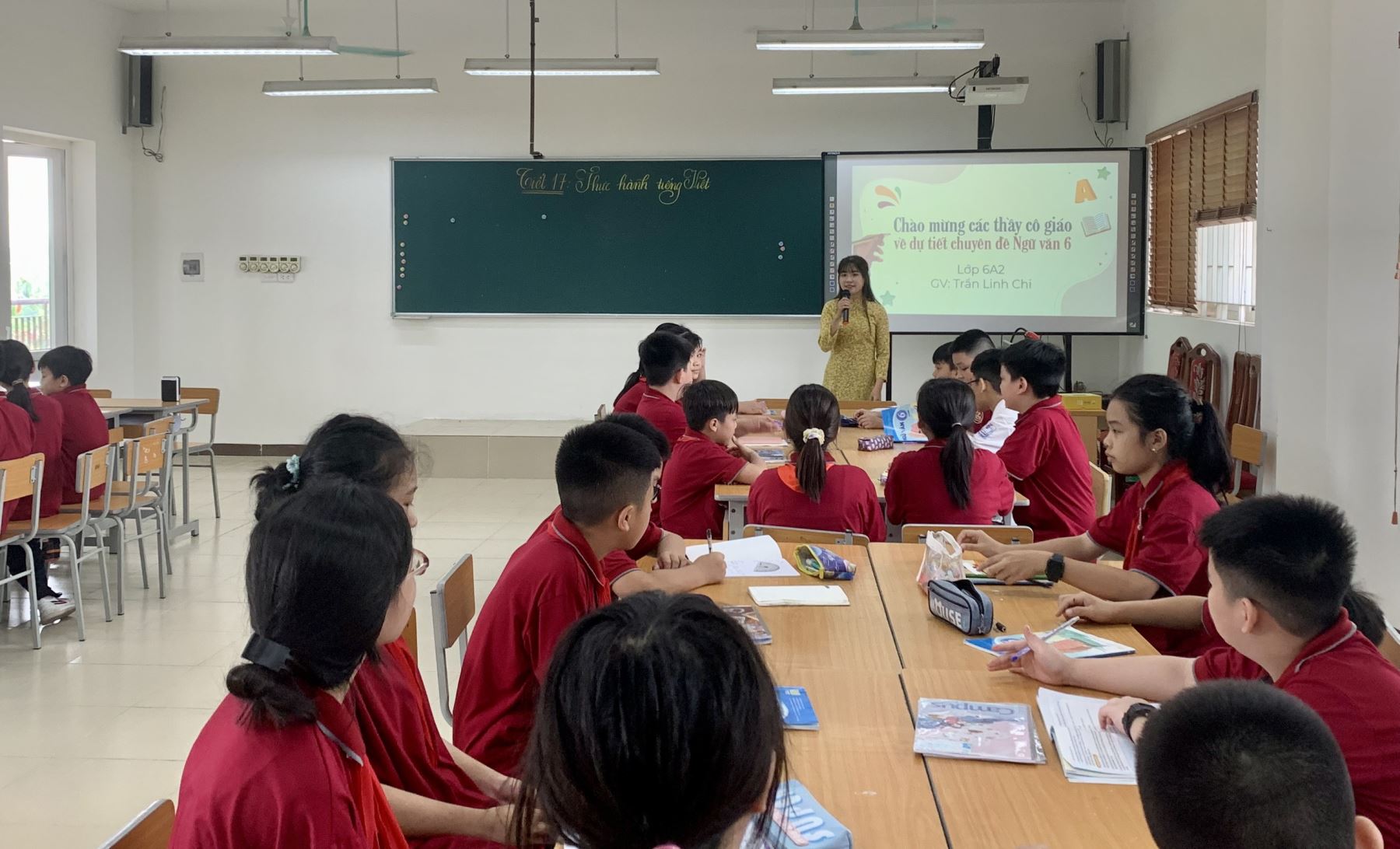 Tại buổi chuyên đề, các thầy cô được tham dự tiết dạy do cô giáo Trần Linh Chi và các em học sinh lớp 6A2 thực hiện (Tiết 17: Thực hành tiếng Việt). Tiết dạy là bước thứ 3 trong Sinh hoạt chuyên môn của nhóm chuyên môn theo hướng Nghiên cứu bài học.