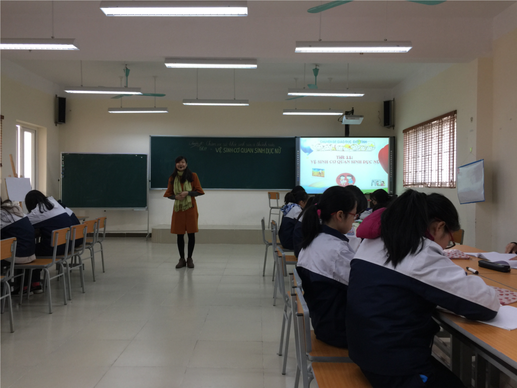 Tiết học do cô giáo Trần Thị Vinh thực hiện tại lớp 7A3. Qua tiết học, các em học sinh nữ đã bước đầu hiểu được tầm quan trọng của việc vệ sinh cơ thể khi bước vào tuổi dậy thì, từ đó biết vệ sinh “vùng kín” của mình đúng cách trong những ngày “đèn đỏ” và ngày thường. Trong không khí giao lưu, cởi mở giữa thầy và trò, các em cũng đã mạnh dạn bày tỏ những thắc mắc thầm kín của mình về việc vệ sinh “vùng kín” để được tư vấn, giúp đỡ.
