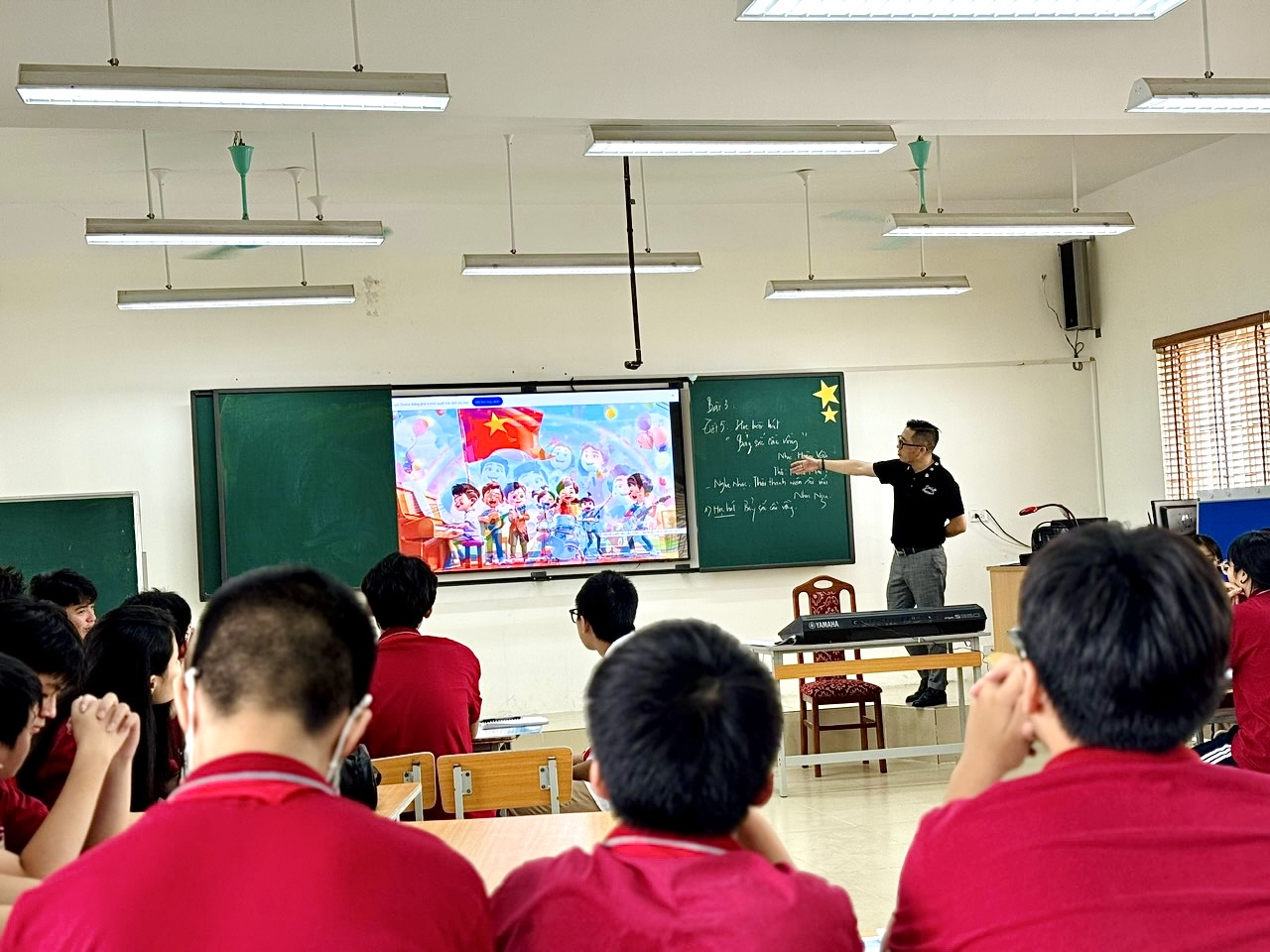 Bằng những phương pháp dạy học hiện đại, sáng tạo, thầy giáo Nguyễn Anh Tuấn đã khéo léo lồng ghép các hoạt động như tổ chức trò chơi, làm việc theo nhóm và trực tiếp thảo luận. Những hoạt động này không chỉ tạo ra không khí học tập vui tươi mà còn giúp học sinh chủ động, tự tin hơn trong việc thể hiện khả năng âm nhạc của mình. Sự linh hoạt trong cách giảng dạy đã giúp học sinh nhanh chóng nắm bắt kiến thức, đồng thời phát huy tối đa năng lực hợp tác, tinh thần làm việc nhóm và sự tích cực trong học tập.