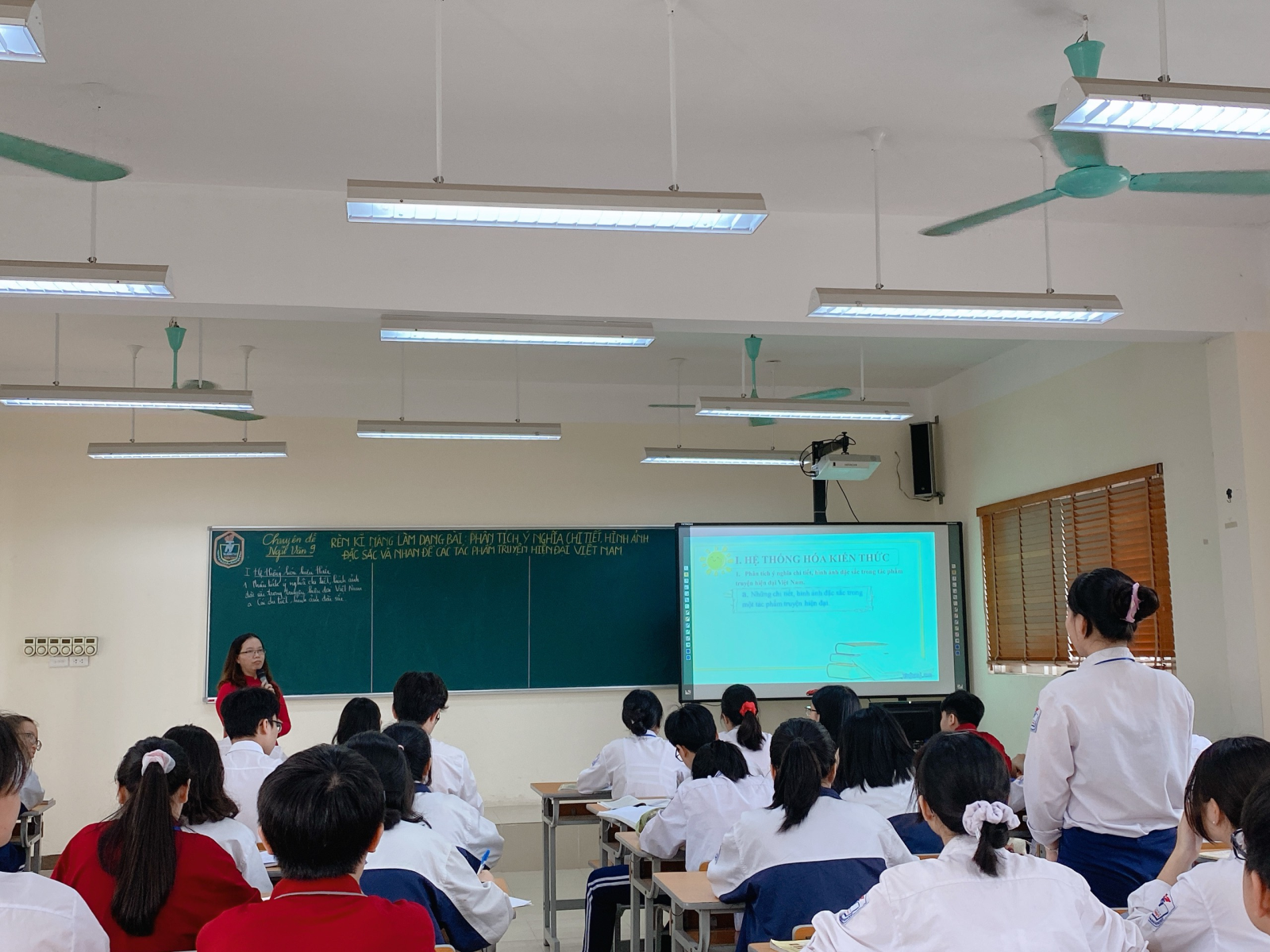Với kinh nghiệm nhiều năm trong nghề, trong tiết dạy, cô giáo Đặng Thị Mai Trang đã thể hiện được cái tâm với nghề, cô khai thác, sử dụng hiệu quả các phần mềm hỗ trợ dạy học, lồng ghép các kiến thức, kĩ năng cần thiết cho học sinh khi phân tích ý nghĩa, chi tiết, hình ảnh đặc sắc và nhan đề các tác phẩm truyện để các em học sinh vận dụng vào giải quyết bài tập. Tiết học diễn ra sôi nổi với những hoạt động tích cực đến từ phía học sinh, các em được chủ động thực hành, thuyết trình và sáng tạo thêm nhiều phương pháp học mới phù hợp.