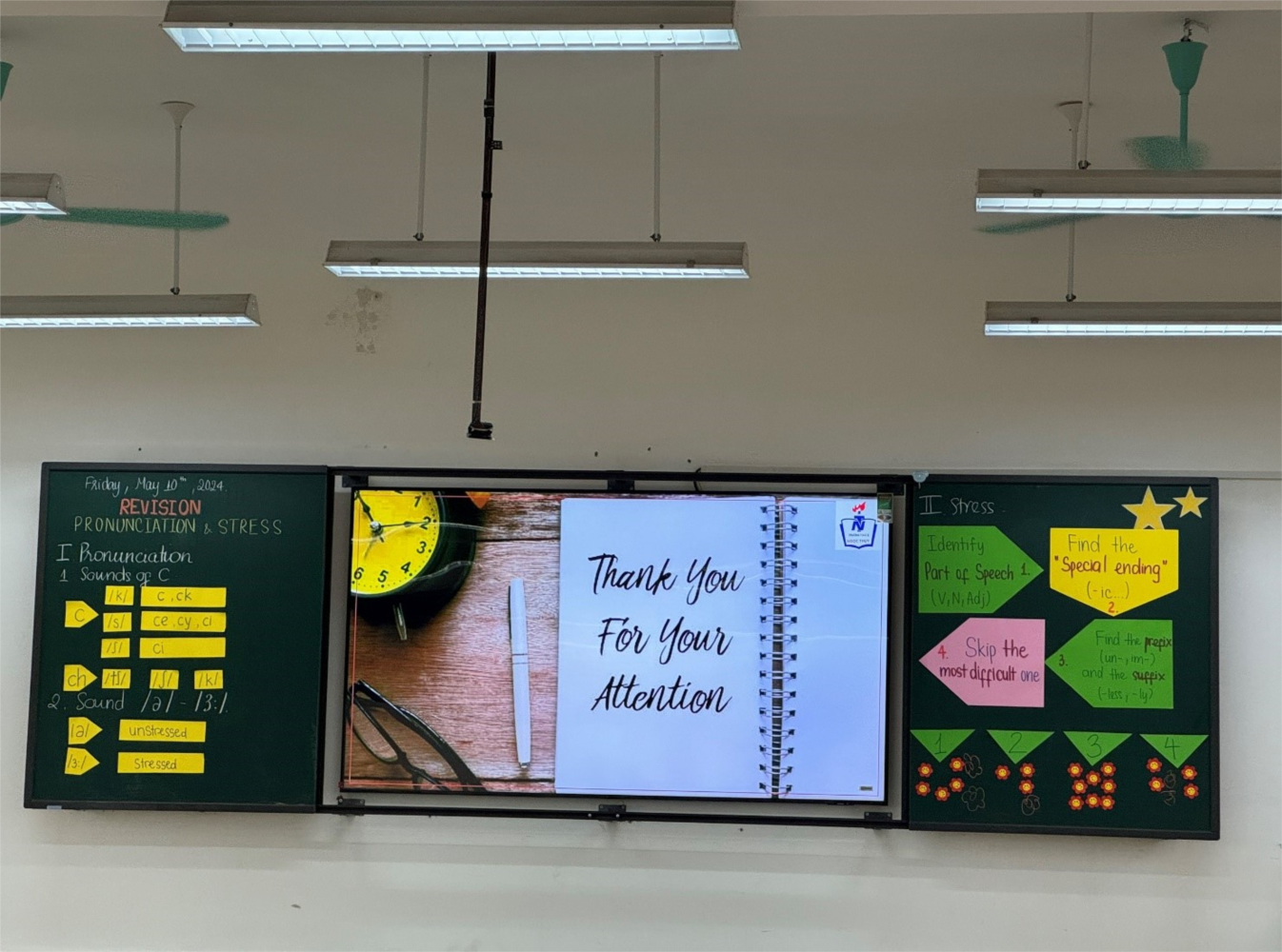 Chuyên đề chuyên môn cấp Trường môn Tiếng anh 9 là cuộc sinh hoạt chuyên môn sâu rộng, giúp thầy cô bộ môn có cơ hội cùng nhìn nhận, trao đổi, học hỏi kinh nghiệm để vững tin hơn trong giai đoạn nước rút ôn thi vào 10. Đồng thời, mục tiêu của chuyên đề là phát triển năng kỹ năng phát âm, cách đánh trọng âm của từ, các mẹo khi làm bài và phát triển năng lực hợp tác cho học sinh. Bằng những hình thức tổ chức hoạt động dạy học linh hoạt như tổ chức cho các chơi trò chơi, làm việc theo nhóm, trực tiếp thảo luận,… cô giáo Đặng Hương Giang đã giúp học sinh lĩnh hội kiến thức, phát huy được năng lực hợp tác, sự chủ động và tích cực của bản thân.
