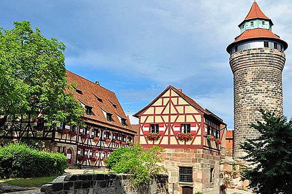 Lâu đài Nuremberg, một trong những pháo đài thời Trung cổ còn tồn tại ở châu Âu, là nơi cư trú của tất cả các vị vua và hoàng đế Đức hợp pháp từ năm 1050 đến năm 1571
