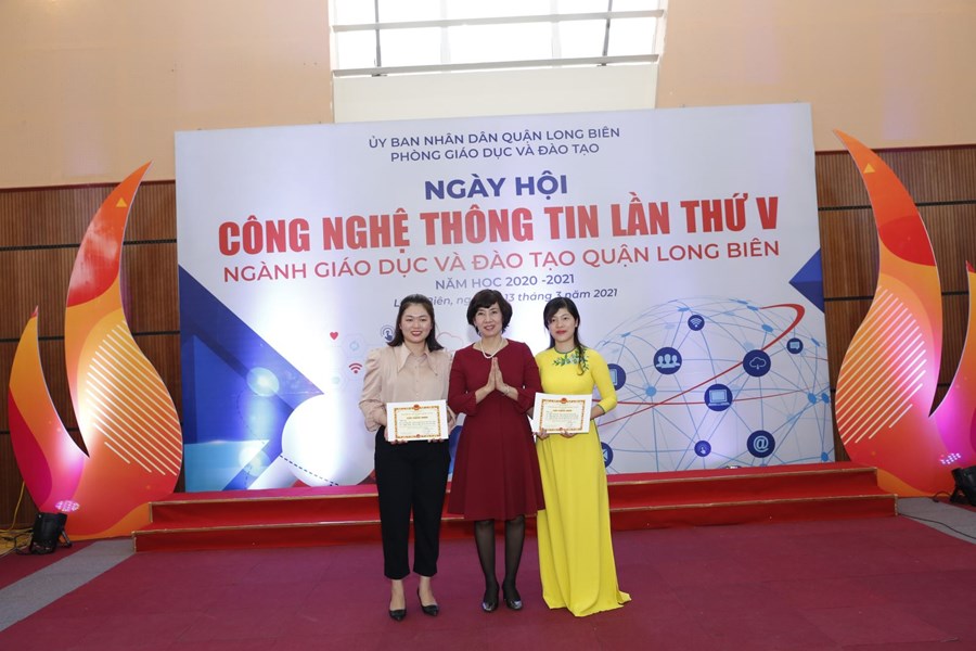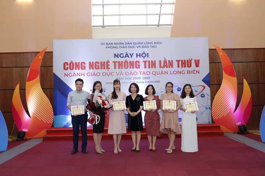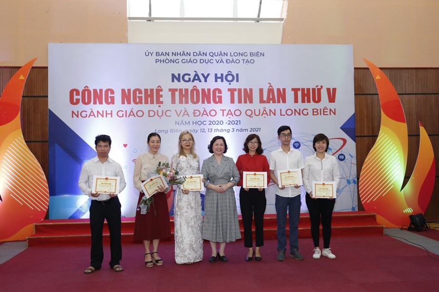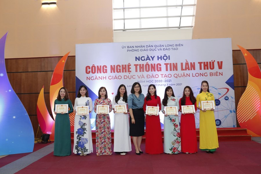 Ngày Hội CNTT lần thứ V, năm 2021 ngành GD&ĐT quận Long Biên thành công tốt đẹp. Kết thúc ngày hội, Ban Tổ chức đã trao Giấy Chứng nhận cho các tập thể có gian trưng bày phong phú, sáng tạo, chất lượng, trong đó có 01 cụm giải Nhất, 02 cụm giải Nhì và 03 cụm giải Ba, ngoài ra Ban tổ chức cũng trao giấy chứng nhận cho 22 cá nhân đạt giải Nhất, 33 giải Nhì, 47 giải Ba về thi kỹ năng CNTT, trong các cuộc thi Thiết kế bài giảng E-learning và Sản phẩm CNTT.