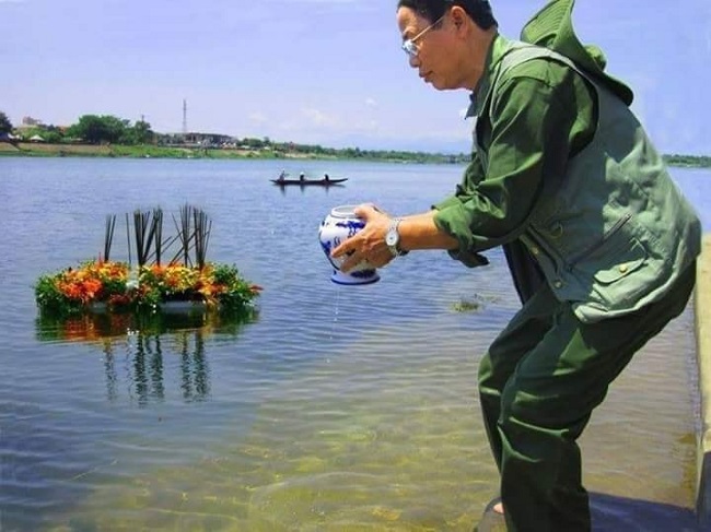 Đã có lần ông chia sẻ với tôi: “Chiến trường là nơi đẹp nhất của tuổi trẻ, là nơi tôi được thể hiện khát khao cống hiến vì sự nghiệp giải phóng dân tộc, thống nhất nước nhà”. Và tôi hiểu với ông, Quảng Trị đã trở thành một phần máu thịt, là quê hương thứ hai của mình để giờ đây mỗi lần về thăm nơi này, ông không khỏi nghẹn ngào, xót xa. Để trả ơn nghĩa đồng đội, ông đã khởi xướng lên tập quán thả hoa xuống dòng sông Thạch Hãn để tưởng niệm vong linh đồng đội, những người đã ngã xuống trên mảnh đất đạn bom này. Điều đặc biệt, tập quán ấy đã được người dân hưởng ứng nối tiếp, nâng lên thành phong tục tâm linh không chỉ cho các ngày lễ 27-7, 30-4… mà còn thường xuyên vào những đêm mồng một, ngày rằm. Ngoài ra, ông cùng nhiều đồng đội còn sống đã và đang lặng lẽ, cặm cụi tìm kiếm hài cốt, thông tin liệt sĩ như một cách trả nợ đồng đội - một món nợ không vay, nhưng nguyện trả đến hết đời.